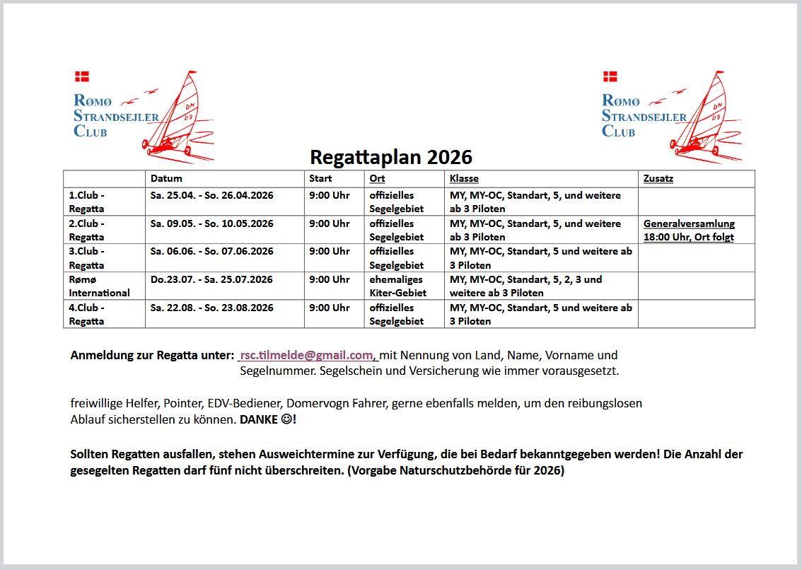 Nun ist er raus, der Regattaplan für alle Strandsegler wichtig, die in Römö segeln gehen wollen.